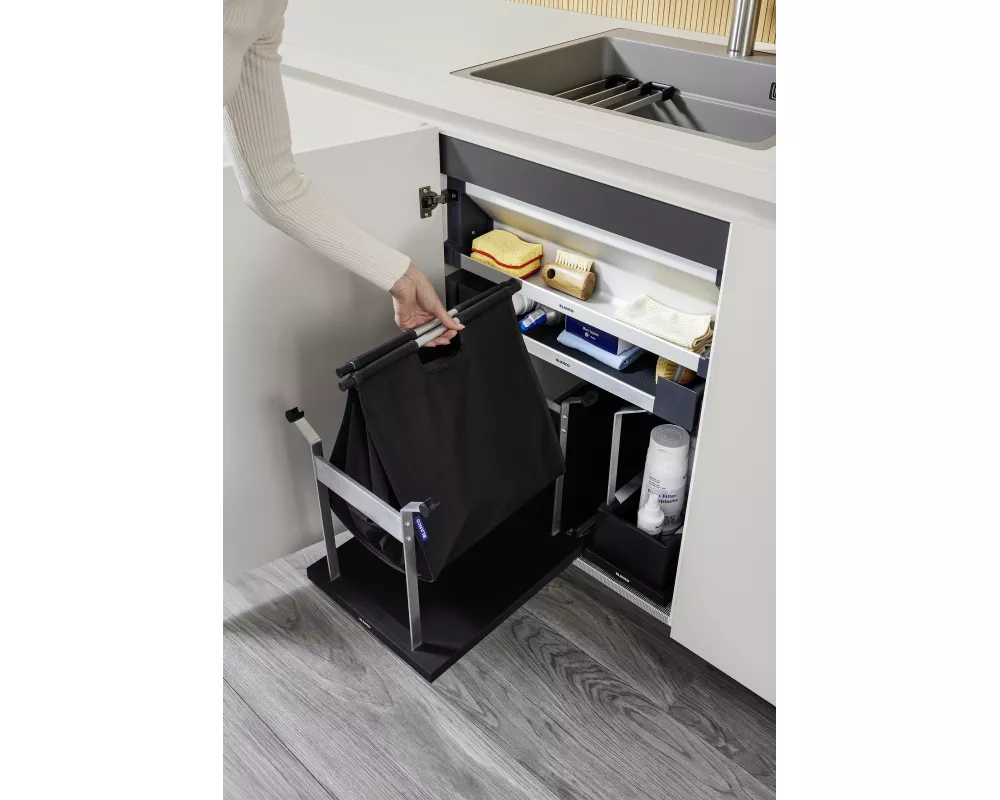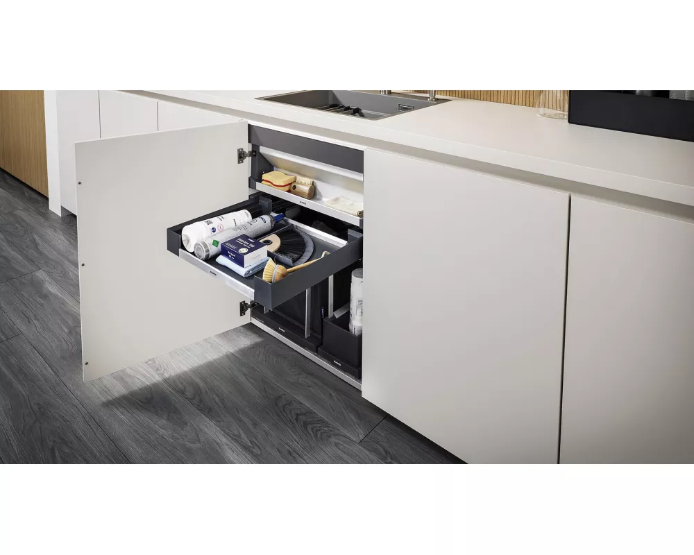 • Ciemnoszary kolor ładnie się komponuje ze wszystkimi pozostałymi elementami do organizacji szafki dolnej BLANCO