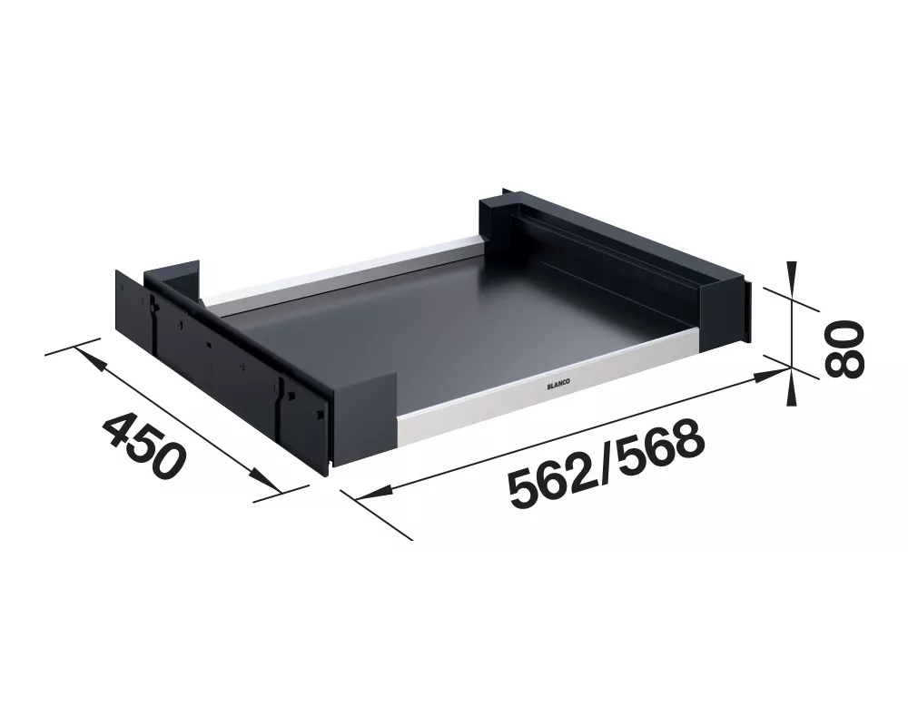 • Ciemnoszary kolor ładnie się komponuje ze wszystkimi pozostałymi elementami do organizacji szafki dolnej BLANCO