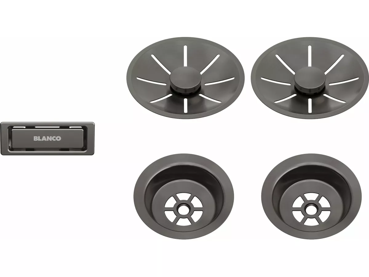 BLANCO Zestaw elementów stalowych w kolorze satin dark steel, do armatury przelewowo-odpływowej InFino, do dwóch komór