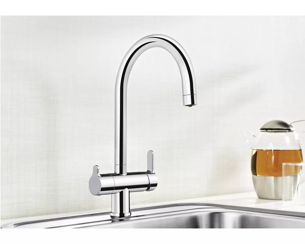 • Woda z dwóch źródeł w jednej wylewce wyposażonej w specjalny regulator strumienia