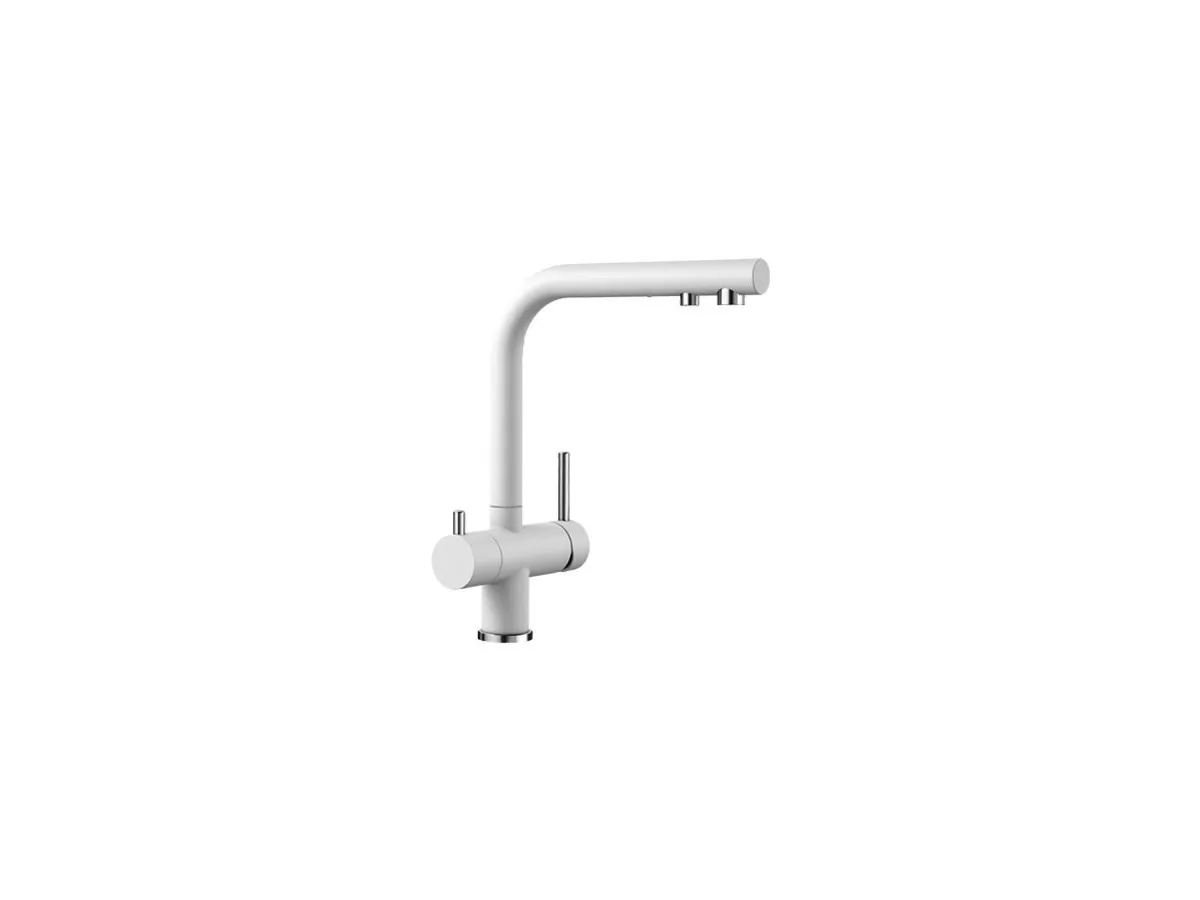 • Komfortowa bateria typu 2 w 1 z dźwignią uruchamiającą dopływ wody z wodociągu umieszczoną z prawej strony i dźwignią wody uzdatnionej z lewej strony
