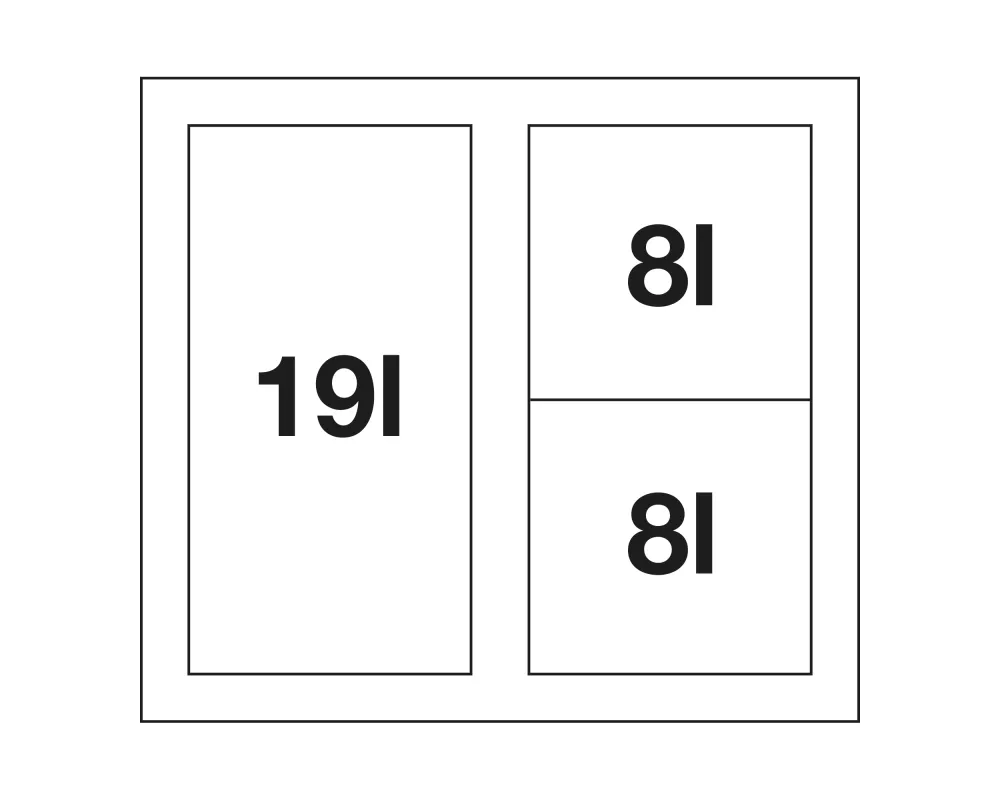 System do wysuwania kosza mocowany do frontu szafki, pokrywa systemowa, 1 x kosz 19 l oraz 2 x 8 l, 1 x pokrywa kosza 8 l
