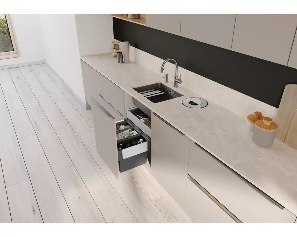 • Przestronna, piętrowa komora o funkcjonalności centrum zlewozmywakowego