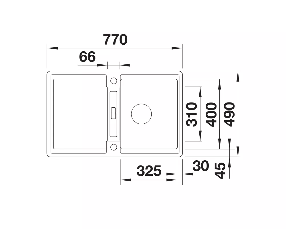 Wymiary zlewozmywaka:770/490 mm