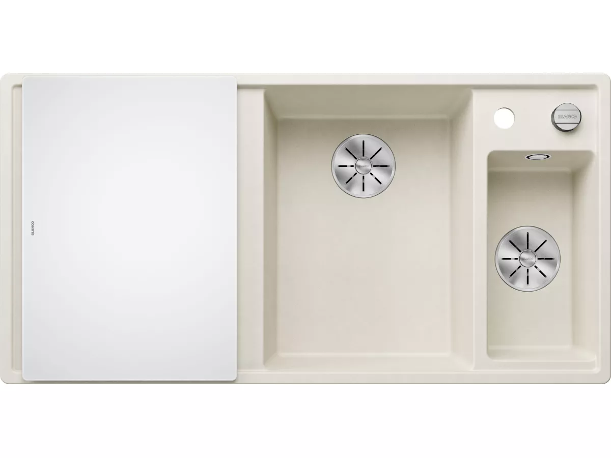 BLANCO AXIA III 6 S Silgranit delikatny biały prawa, korek auto., InFino, deska szkło białe, odsączarka stalowa