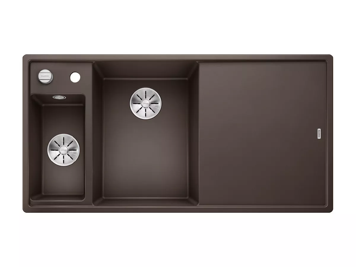 BLANCO AXIA III 6 S Silgranit kawowy lewa, korek auto., InFino, deska jesionowa, odsączarka stalowa