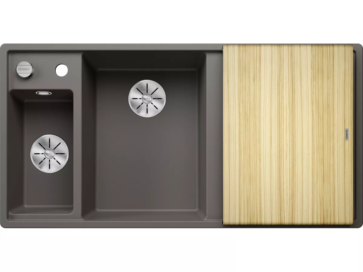 BLANCO AXIA III 6 S Silgranit wulkaniczny szary lewa, korek auto., InFino, deska jesionowa, odsączarka stalowa