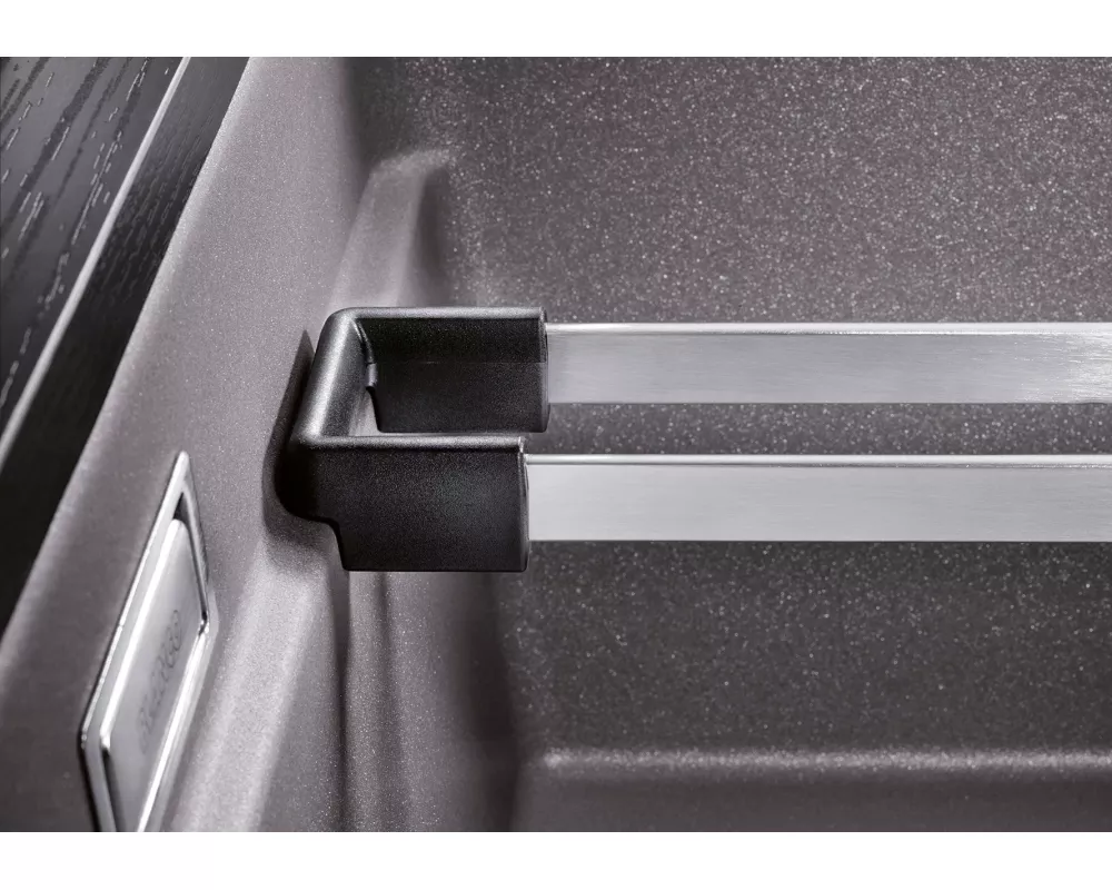 Dzięki nowatorskiemu projektowi Blanco, zlewozmywak Etagon zyskuje wszechstronność zastosowań, a równocześnie wymaga niewiele miejsca. Zintegrowana krawędź w polaczeniu ze specjalnie opracowanymi szynami ETAGON umożliwia pracę na trzech poziomach nowoczesnej komory.