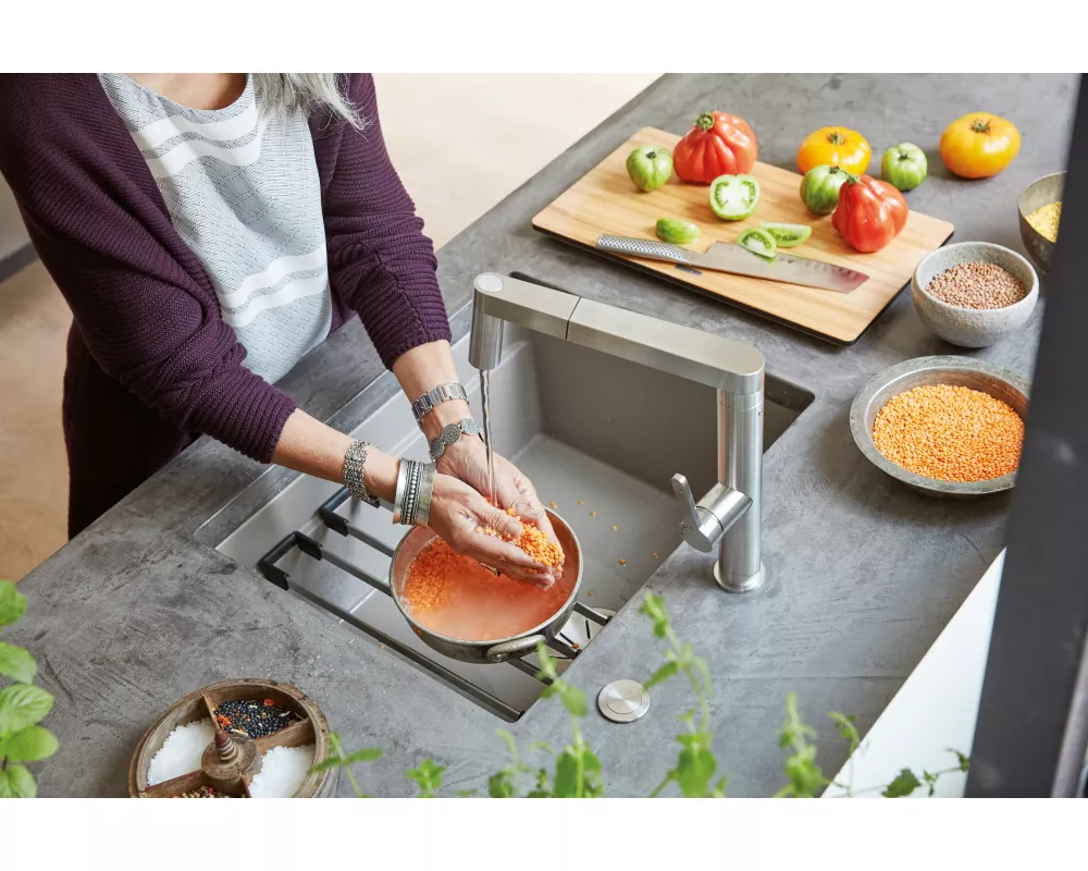 Połączenie pięknego wzornictwa i imponująco wytrzymałej, łatwej w pielęgnacji powierzchni sprawia, że zlewozmywak z kompozytu SILGRANIT to doskonały wybór. Komora zlewozmywaka sprosta codziennym wyzwaniom, takim jak zadrapania sztućcami, rozmrażanie żywności, kontakt z wrzącą wodą. Silgranit to prawdziwy bohater w kuchni. Jest neutralny w kontakcie z żywnością i wodoodporny, dzięki czemu również szczególnie łatwy w czyszczeniu. Zlewozmywak lub komora z Silgranitu to doskonały wybór, aby ułatwić sobie codzienne prace w kuchni.