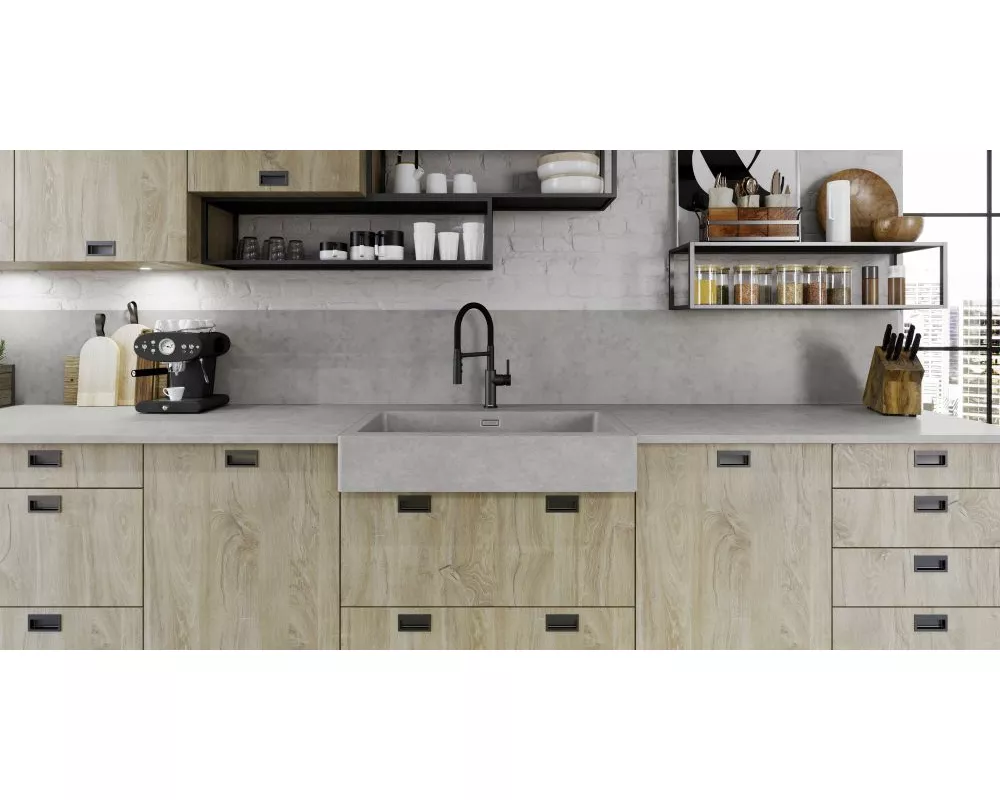 • Charakterystyczny zlewozmywak w stylu modern farmhouse, idealny do nowoczesnych projektów kuchni