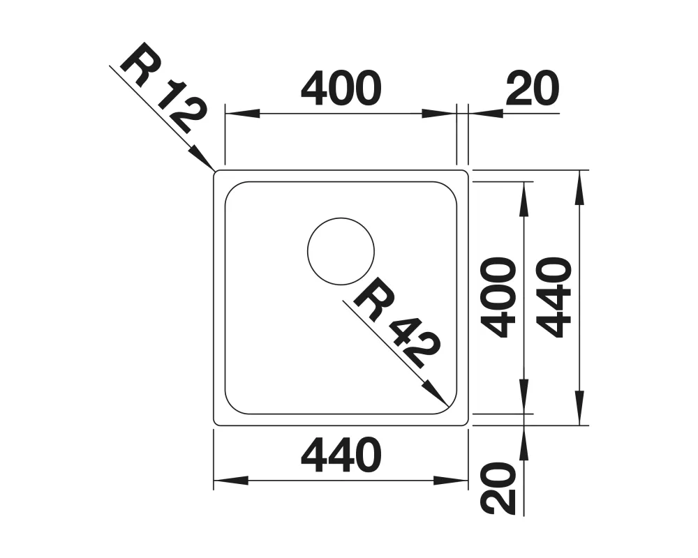 Wymiary zlewozmywaka:440/440 mm